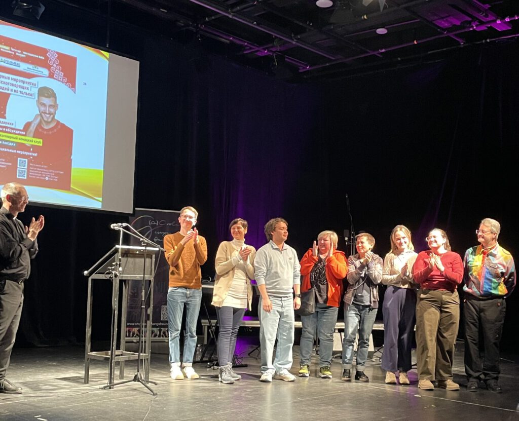 „Auf einmal wurden Menschen in ihrem eigenen Land illegal“, beschrieb Laudator Dr. Axel Schwaigert das Los von queeren Menschen aus Russland und deren aussichtsloser Lage in ihrem Heimatland. In der Stuttgarter Weissenburg treffen sie sich nun mit anderen russisch-sprachigen Menschen – z.B. auch Menschen, die in der Ukraine beheimatet waren. „Es entstanden Freundschaften über Frontlinien hinweg“, so skizzierte Axel Schwaigert die segensreiche Arbeit von RussQueer, die in der Diaspora nicht nur für ein wenig Heimeligkeit sorgt, sondern auch für Vernetzung und Ermutigung.